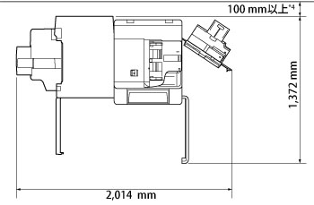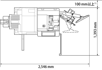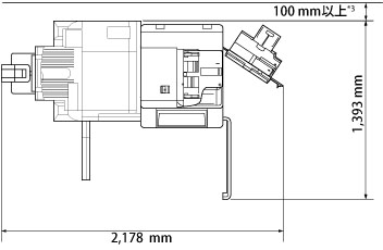*6 ペーパーフォールディングユニット・H1、インサーター・K1のうち、いずれのオプションも装着していない場合には100 mm以上のスペースを確保してください。