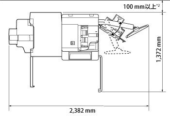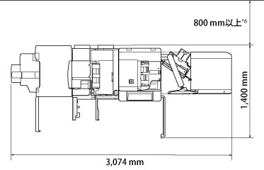 *2 ペーパーフォールディングユニット・H1、インサーター・K1のうち、いずれか一つ以上のオプションを装着する場合には800 mm以上のスペースを確保してください。