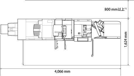 *4 ペーパーフォールディングユニット・H1、インサーター・K1のうち、いずれか一つ以上のオプションを装着する場合には800 mm以上のスペースを確保してください。