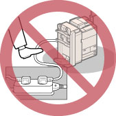 カセットやペーパーデッキ、本体ユニットをすべて引き出した状態で、機械前部に荷重をかけると、機械が前方に倒れる恐れがあり大変危険です。ストッパーは必ず固定しておいてください。