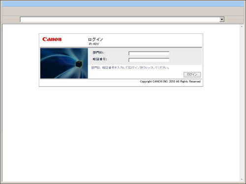 部門ID/暗証番号またはシステム管理部門ID/システム管理暗証番号を入力して、リモートUI、MEAPアプリケーション(ログインアプリケーションを含みます)にログインします。