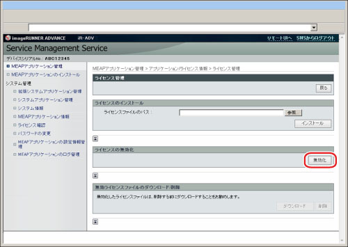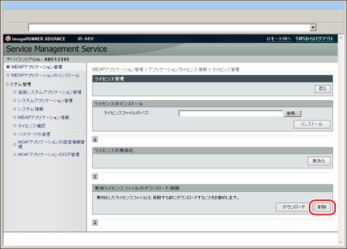 無効化したライセンスファイルを削除すると、再び本体からダウンロードすることはできなくなります。
