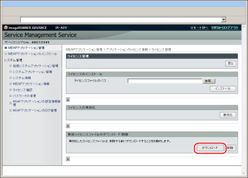 無効化されているライセンスファイルのみ、ダウンロードや削除を行えます。
