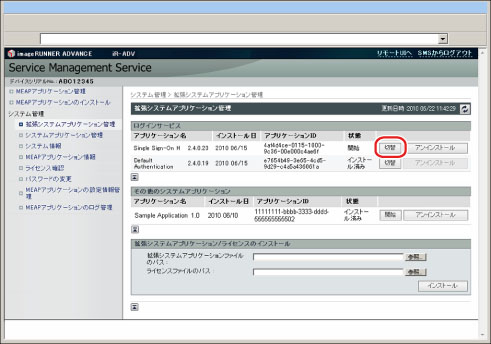 工場出荷時は、Default Authentication(部門別ID 管理)を使用できる状態になっています。SSO-Hを使用する場合は、変更する前に[部門別ID管理]を「OFF」にしてください。部門別ID管理の設定については、「部門別ID管理を設定する」を参照してください。