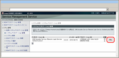 SMS用のパスワードでログインした場合:ユーザー名/パスワードでのログイン(Remote Login Service Authentication)のサービスを開始/停止できます。