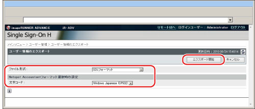 NetSpot Accountant 4.x/imageWARE Accounting Manager専用のフォーマットで作成されたユーザー情報をエクスポートします。ファイルの拡張子は「csv」です。
