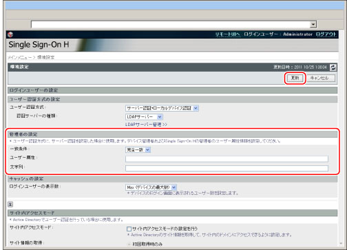 [完全一致]、[部分一致]、[前方一致]、[後方一致]から設定します。ログイン時、LDAPサーバーから取得した属性値とこの画面で入力したユーザーグループ名を比較するときの一致条件を選択します。