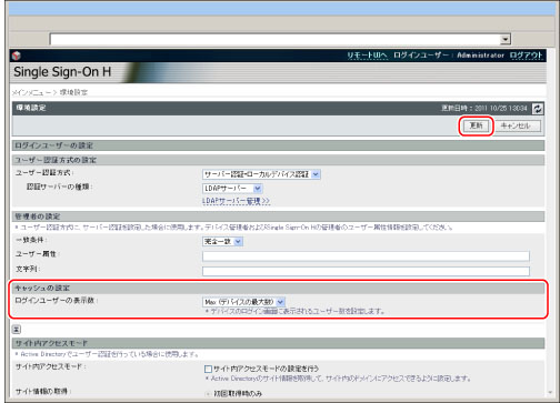 ログインユーザーの表示数の設定は、本体の再起動後に有効になります。設定を変更したあと、一度本体の主電源を切り、10秒後に電源を入れなおしてください。電源の入れかた/切りかたは、「主電源と節電キーについて」を参照してください。