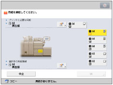 連続プリント中に用紙補給のメッセージが表示されたときには、用紙を補給したあと自動的にプリントが再開されます。他の給紙箇所を選択した場合は、[OK]を押すとプリントが再開されます。