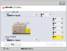 連続プリント中に用紙補給のメッセージが表示されたときには、用紙を補給したあと自動的にプリントが再開されます。他の給紙箇所を選択した場合は、[OK]を押すと、プリントが再開されます。