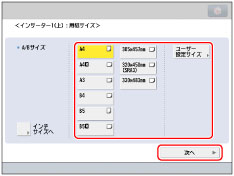 インチサイズを選択する場合は、[インチサイズへ]を押します。