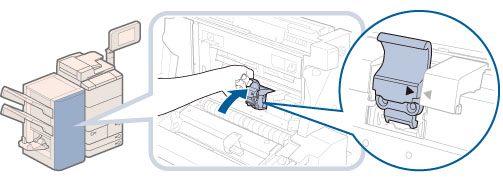 中とじユニットを元の位置に戻すときは、すき間に指をはさまないように注意してください。
