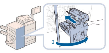 針ケースの交換や断裁屑/パンチ屑/針足屑の処理、あるいは紙づまりや針づまりを取り除くために、装着しているオプション機器のカバーを開けている状態でも、正常に動作しているオプション機器へのコピー/プリントの出力は行われる場合があります。装着しているオプション機器のお取り扱いにはご注意ください。