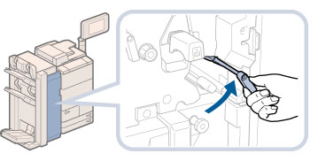 針ケースの交換や断裁屑/パンチ屑/針足屑の処理、あるいは紙づまりや針づまりを取り除くために、装着しているオプション機器のカバーを開けている状態でも、正常に動作しているオプション機器へのコピー/プリントの出力は行われる場合があります。装着しているオプション機器のお取り扱いにはご注意ください。