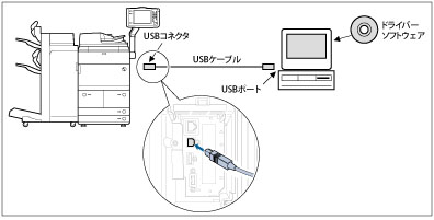 本製品とUSB接続したコンピューターは、ジョブの送信先や転送先として指定できません。また、そのコンピューターでは、リモートUIとNetwork ScanGearは使用できません。