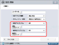 <セキュリティー設定>:[認証あり/暗号化あり]