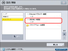 [環境設定]→[ネットワーク]→[IEEE802.1X設定]を押す