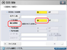 IEEE802.1X認証の対象がログインユーザー以外のユーザー:[ユーザー名]にユーザー名称を、[パスワード]に指定したユーザーのパスワードを入力してください。確認入力画面で同じパスワードを入力したあと、[OK]を押します。