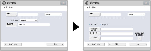 操作パネルの[ホスト名]に入力できるのは、半角128文字(全角64文字)以内です。また、[フォルダーへのパス]は半角255文字(全角127文字)以内です。それぞれ制限文字数以内になるようにサーバー側を設定してください。