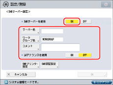 SMBサーバーを使用しないときは、<SMBサーバーを使用>の[OFF]を押します。