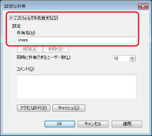 Active Directory環境では、共有フォルダーのセキュリティーの設定手順は上記と異なります。詳細は、Windowsの説明書を参照してください。