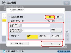 Macintoshのプリンター画面に表示されるプリンターの名称を設定するには、[サービスの名称]を押します。プリンターの名称を入力したあと、[OK]を押してください。