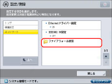 [環境設定]→[ネットワーク]→[ファイアウォール設定]を押す