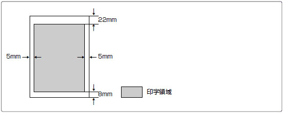 TOF行は用紙の上端から約22 mmの位置になり、第1文字目の印字位置は、有効印字領域の左端とほぼ同じ位置になります。