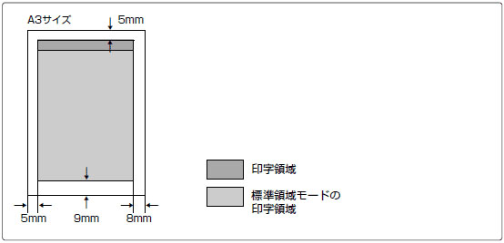 A3サイズより小さい用紙を使用した場合は、標準領域モードと同じになります。