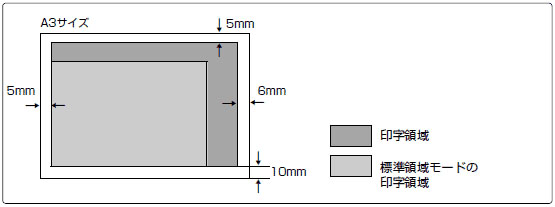 A3サイズより小さい用紙を使用した場合は、標準領域モードと同じになります。