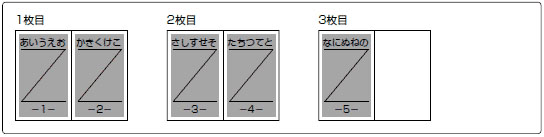 たとえば、5ページ分の印字データは、次のように印字されます。