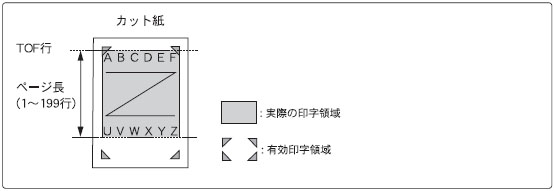 設定したページ長は、カット紙を実寸で印字するページフォーマット(Fmode 1, 2)およびカット紙を縮小するページフォーマットFmode 7, 8(標準領域モード)で有効になります。
