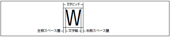 ![]() 文字幅および文字ピッチ(文字幅+左右スペース量)の最大値は次のとおりです。