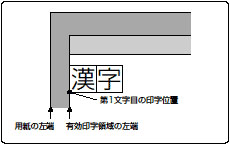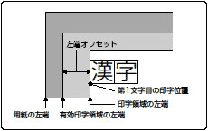 iRシリーズ/imagePRESSシリーズ/imageRUNNER ADVANCEシリーズの有効印字領域の左端から次の量だけオフセットした位置に、第1文字目を印字します。