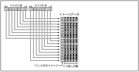 16進数でイメージデータ1ドット列(16ビット)を指定します。