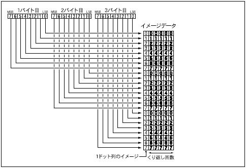 指定した24ビットのイメージデータを、指定した回数だけ繰り返して印字します。