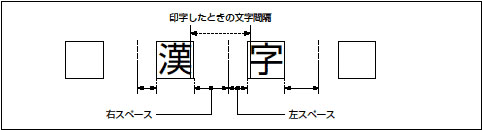 <文字間左スペース量(任意バイト)> <文字間右スペース量(任意バイト)>