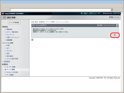 リモートシャットダウン機能を使って、リモートUI から本製品を終了させることができます。