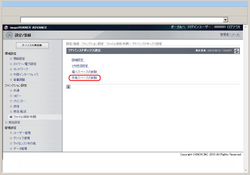 アドバンスドボックスを設定する場合は管理者としてログインしている必要があります。