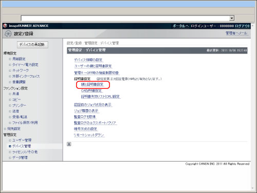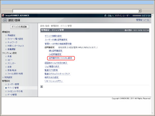 証明書失効リスト(CRL)をインストールする場合は、管理者としてログインする必要があります。