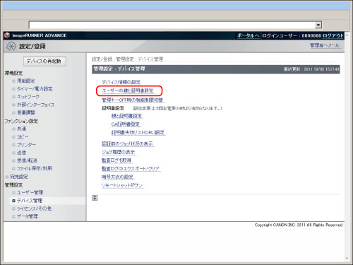 本機能は、システム管理者情報の設定をしていて、ユーザー署名&タイムスタンプ拡張キットが有効な場合のみ表示されます。