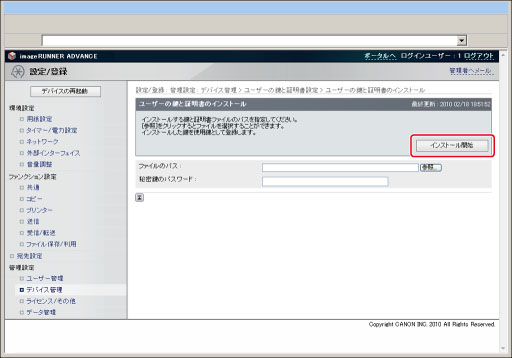 鍵ペアとサーバー証明書をインストールする場合は、管理者としてログインする必要があります。