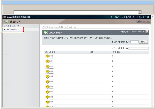 ファクスボックスの詳しい説明は、「ファクスボックス」を参照してください。