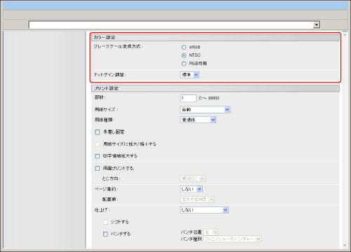 カラーのプリントデータをグレースケールに変換してプリントするときの方式を選択しま