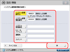[システム管理者名]を押して、システム管理者の名称を入力したあと、[OK]を押します。