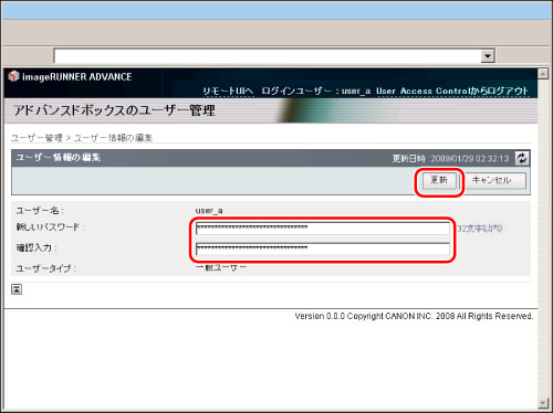 [アドバンスドボックスのユーザー管理]を使用する一般ユーザーは、自分自身のパスワードを変更できます。