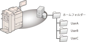 各ユーザーがマイフォルダーとして使用できるのは、管理者が指定するフォルダー(以降、ホームフォルダーと呼びます)配下にある、専用フォルダー(ファイルサーバーログイン時のユーザー名のフォルダー)に限定されます。