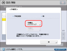 バックアップ/リストア中は、USBメモリーを取り外さないでください。USBメモリー、USBポート、USBメモリー内のデータが破損する恐れがあります。また、リストア中にUSBメモリーを取り外した場合は、本製品が故障する恐れがあります。