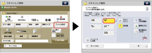 [ファイル形式]を押す→PDFを選択