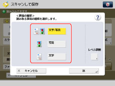 原稿がOHPフィルムのときは、原稿の種類を設定したあと、原稿に合わせて濃度を調節してください。